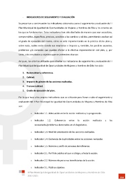 Así pues, los criterios utilizados para diseñar los indicadores de seguimiento y evaluación del II