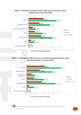 Gráfico 1. l) Porcentaje de hombres y mujeres que componen la población extranjera, según