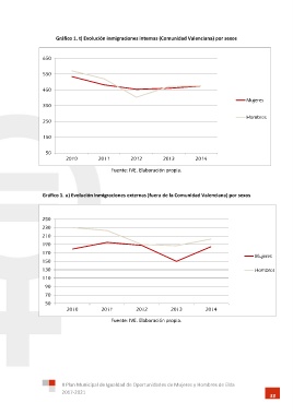 Gráfico 1. t) Evolución inmigraciones internas (Comunidad Valenciana) por sexos