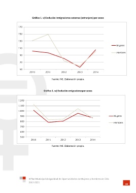 Gráfico 1. v) Evolución inmigraciones externas (extranjero) por sexos