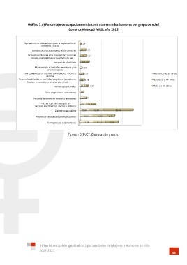 Gráfico 3.o) Porcentaje de ocupaciones más contratas entre los hombres por grupo de edad
