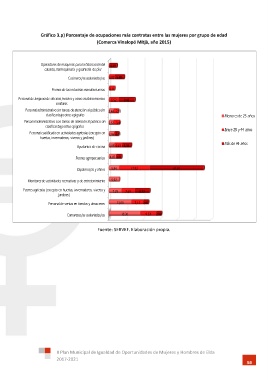 Gráfico 3.p) Porcentaje de ocupaciones más contratas entre las mujeres por grupo de edad