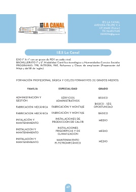 FORMACIÓN PROFESIONAL BÁSICA Y CICLOS FORMATIVOS DE GRADOS MEDIOS: