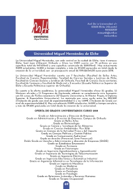 En cuanto a la oferta académica, la universidad Miguel Hernández ofrece 25 grados, 53