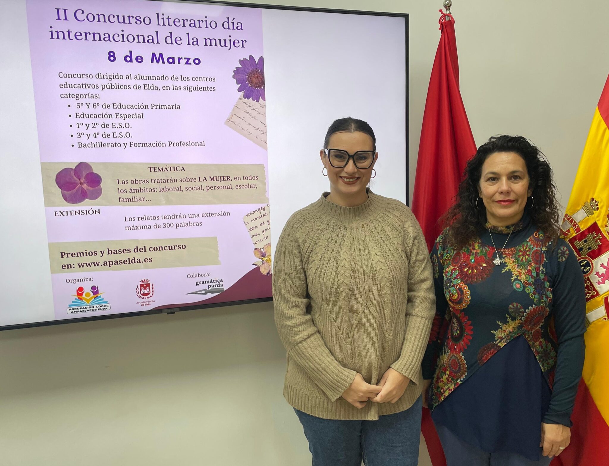 La Agrupación Local de Ampas de Elda y el Ayuntamiento de Elda, a través de las concejalías de Educación y de Igualdad, han puesto en marcha la segunda edición del Concurso Literario Día Internacional de la Mujer 8-M. El certamen ha sido presentado esta mañana por la concejala de ambas áreas, María Gisbert, y Belén Maestre, en representación de la Agrupación Local de Ampas.