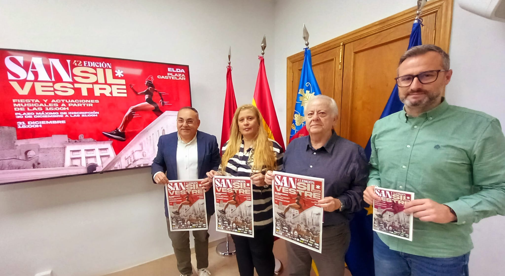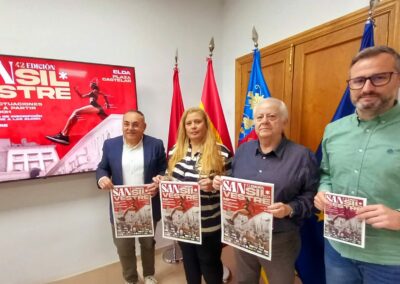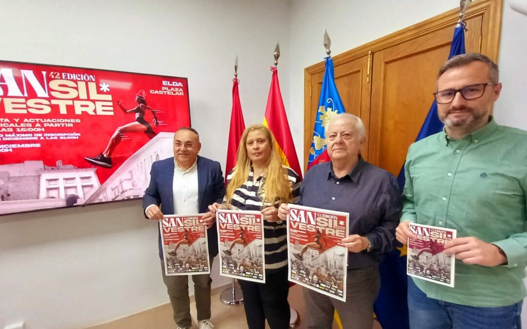 El concejal de Deportes, Enrique Quilez, ha presentado esta mañana la 42 edición de la San Silvestre Eldense, una prueba cuyo periodo de inscripción ha quedado abierto esta misma mañana. El edil ha estado acompañado por José María Martínez, coordinador del área de Deportes; José Jaquín Pérez, coordinador del Consejo Local de Deporte Escolar de Elda, y María José Orugo, vicepresidenta de la Federación Española de Atletismo.
