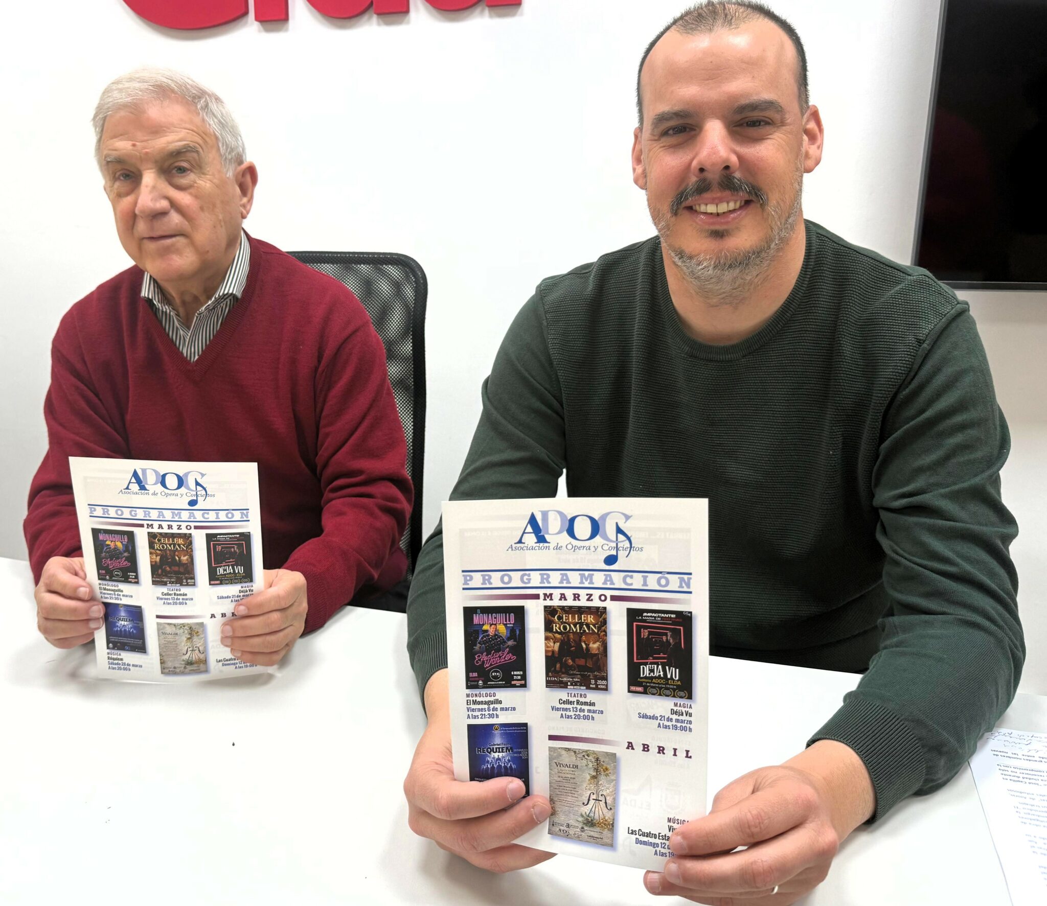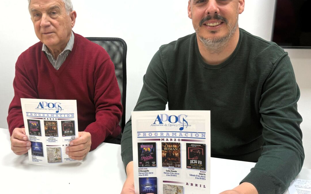 La Asociación de Ópera y Conciertos de Elda (ADOC) ha presentado su nueva programación cultural para los próximos meses, una propuesta variada que incluye monólogos, teatro, magia y música clásica y contemporánea. El calendario, que se desarrollará entre los meses de marzo y junio en el Auditorio ADOC, reúne diez espectáculos pensados para atraer a públicos diversos y consolidar la actividad cultural de la ciudad.