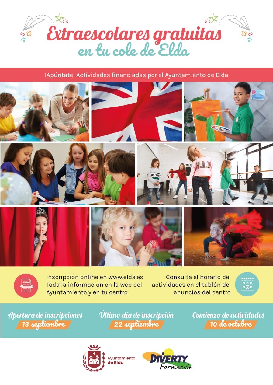 • Las familias disponen hasta el 22 de septiembre para inscribir a sus hijos e hijas en las actividades que darán comienzo el 10 de octubre en los centros educativos eldenses