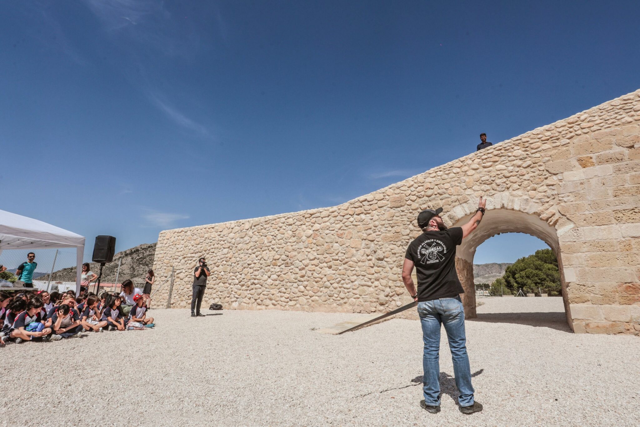 El alcalde de Elda, Rubén Alfaro, junto con el concejal de Fiestas, David Guardiola, y la edil de Educación, María Gisbert, han acompañado a las y los escolares en su visita al Castillo, donde han podido conocer la historia de uno de los buques insignias del patrimonio eldense. Previamente, los pequeños han subido al Castillo de Embajadas, donde esta noche el actor Alejandro Vera leerá el Pregón de las fiestas de Moros y Cristianos y mañana tendrá lugar la espectacular Entrada de Bandas.