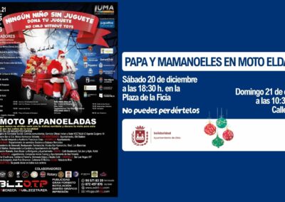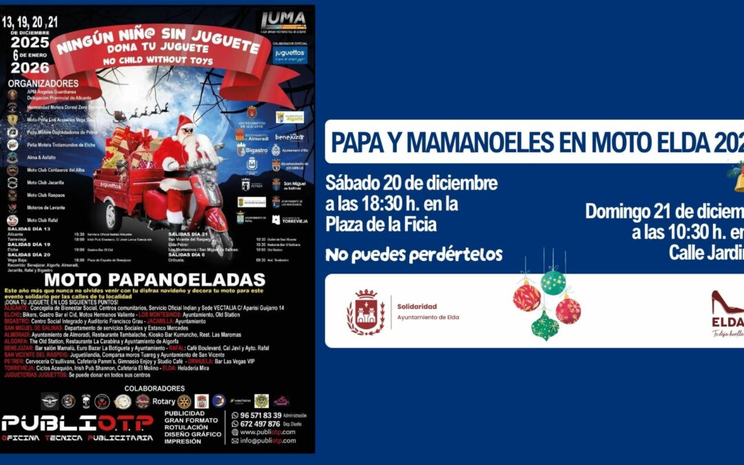 El próximo fin de semana se celebrará en Elda la ya tradicional ‘Papanoelada’, actividad solidaria organizada por la Peña Motera Depredadores en colaboración con la Concejalía de Solidaridad. Este año será dos las salidas que realizarán cerca de un centenar de moteros y moteras procedentes de Elda, Petrer y otras localidades de la provincia.
