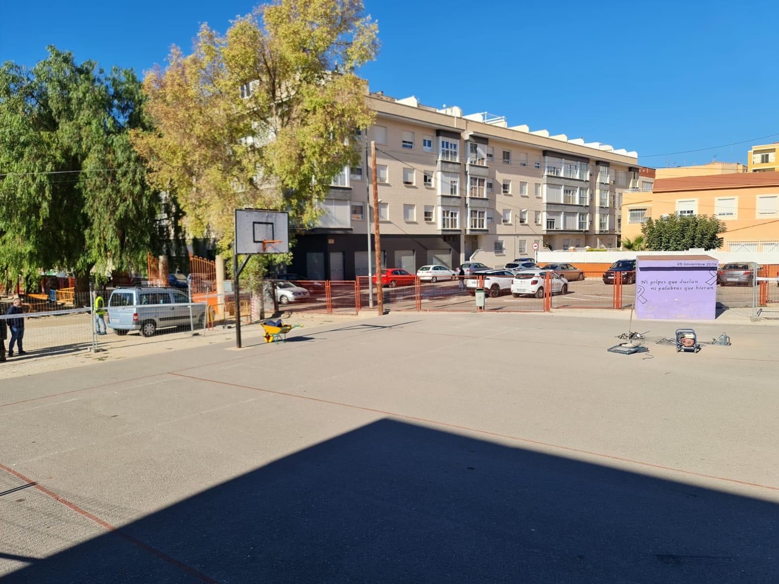El alcalde Rubén Alfaro ha visitado esta mañana el CEIP Miguel Hernández, donde se van a renovar las superficies y material de las canchas de baloncesto, se van a reemplazar los juegos infantiles y se van a instalar zonas de sombra
