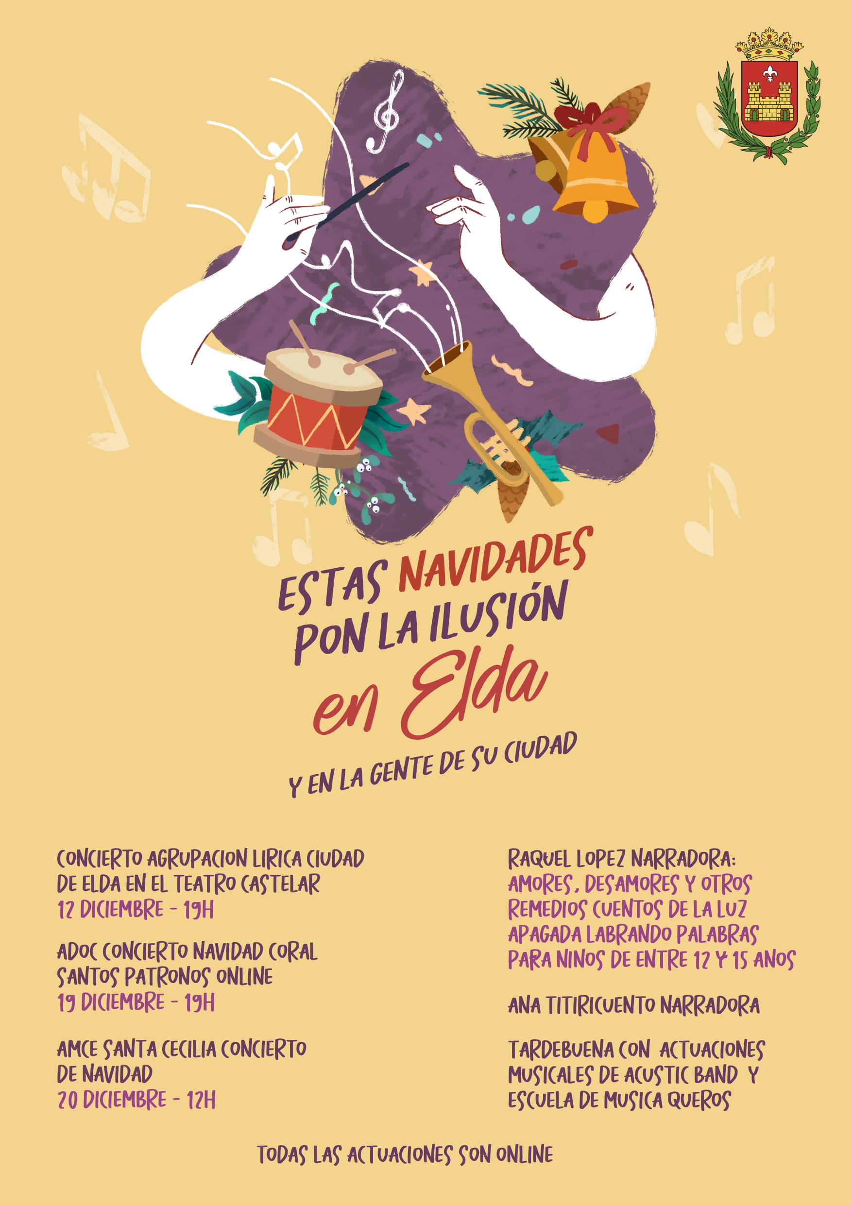 Todas las actuaciones serán gratuitas y se retransmitirán de manera telemática en la página de Facebook del Ayuntamiento de Elda.