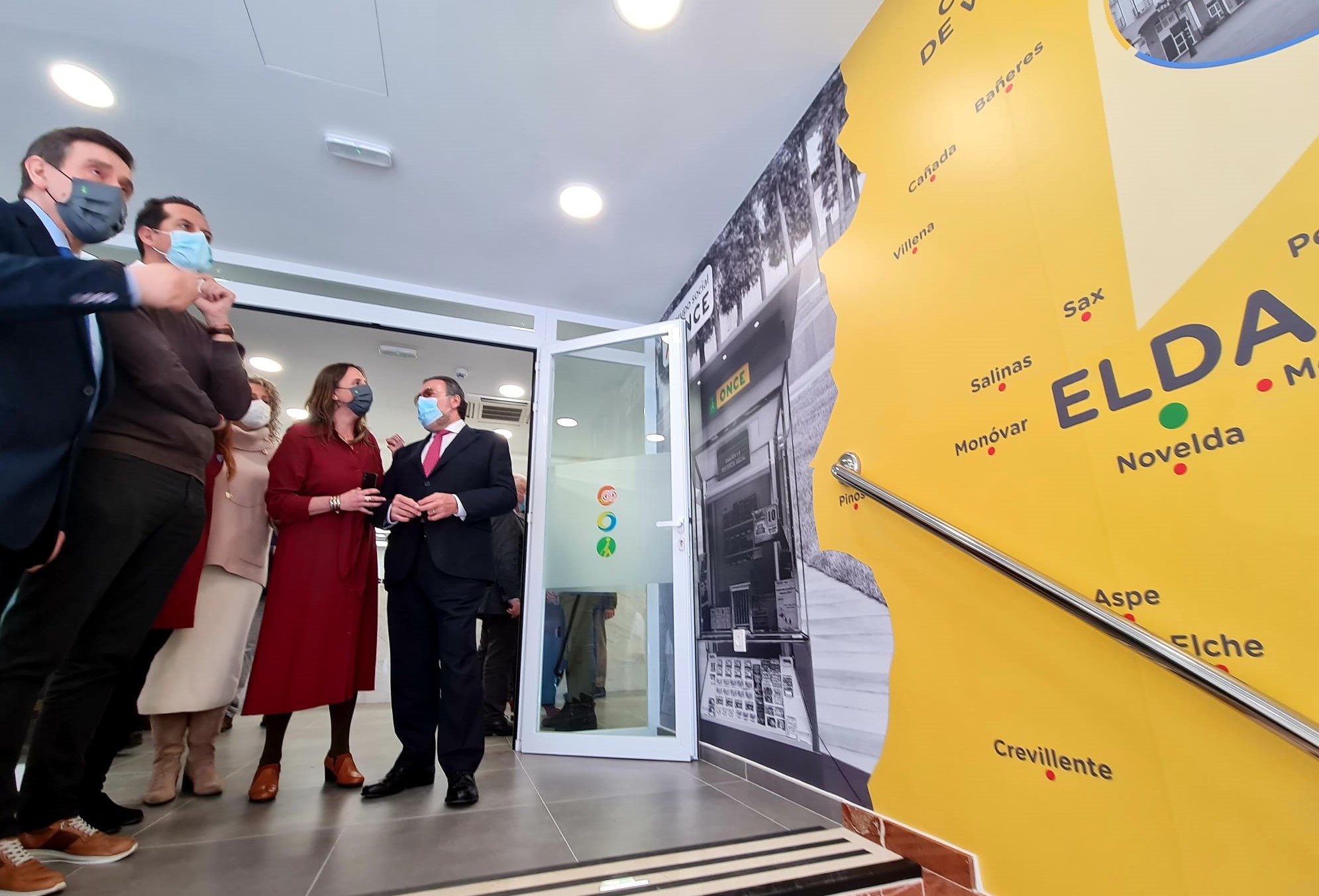 El alcalde de Elda, Rubén Alfaro, acompañado de la concejala de Bienestar Social, Alba García, ha asistido esta mañana a la inauguración de la remodelada sede de la ONCE en Elda, situada en la calle Cervantes. En el acto han estado presentes Miguel Carballeda, presidente del Grupo Social ONCE; Carlos Carrazoni, director de la ONCE en Elda, y Estela Medina, directora de la ONCE en Alicante.