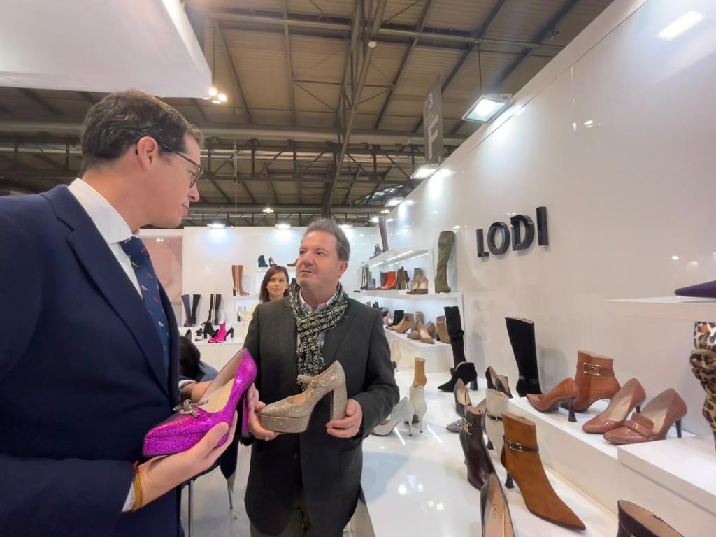 El regidor eldense ha visitado los stands de las empresas de Elda y comarca, donde ha podido conversar con los representantes de las firmas y tomar el pulso a las sensaciones de la industria eldense del calzado. Alfaro se ha reunido con los representantes de Lodi, Audley y Chie Mihara, y también ha visitado los stands de Unisa (Monóvar) y de Hispanitas (Petrer).
