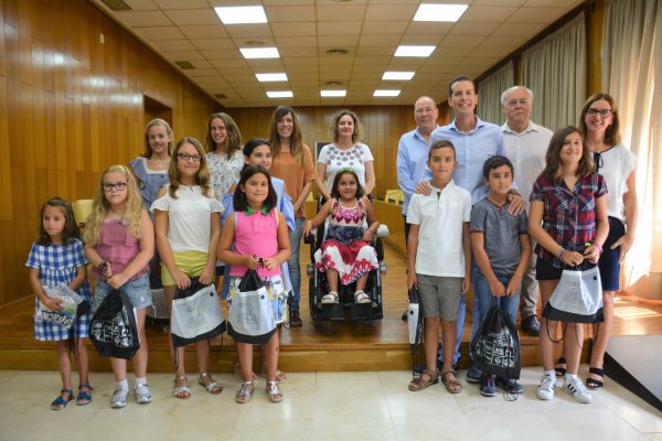 Una vez finalizado el obsequio de las camisetas y pañuelos, la Cofradía de los Santos Patronos, junto al alcalde, la pregonera y la edil de Fiestas, Laura Rizo, han realizado la entrega de premios del concurso de dibujo y narrativa en el salón de plenos, donde los niños galardonados han recibido un kit de fiestas compuesto por la camiseta de “correr la traca”, un pin, una leyenda de la llegada de los Santos Patronos a la ciudad, así como una mochila de los patronos.