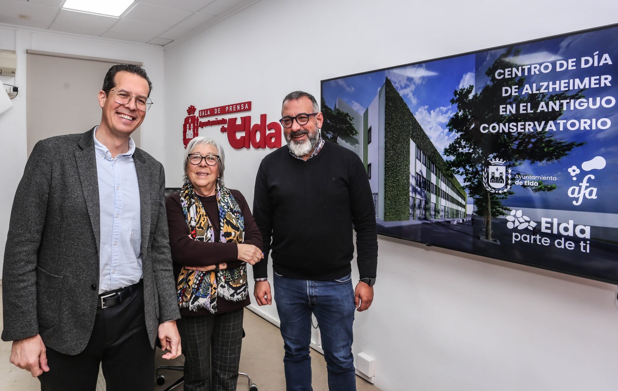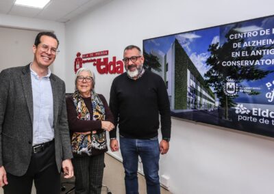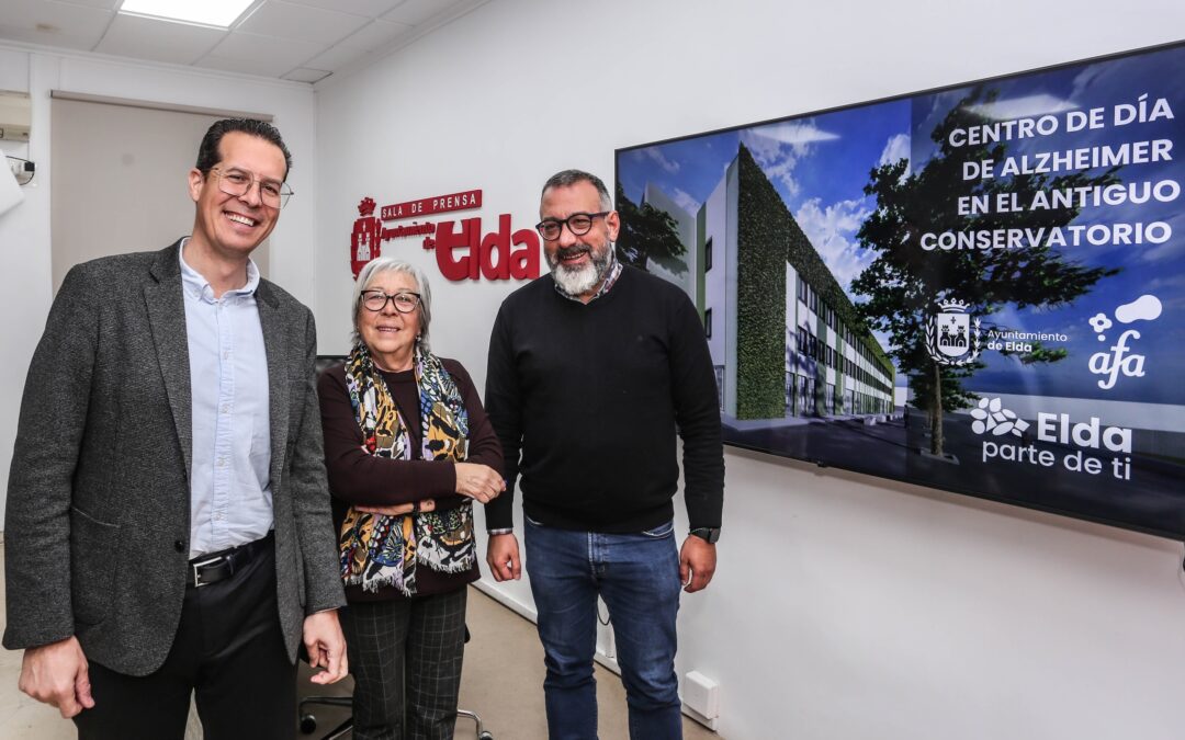 El edificio del antiguo Conservatorio de Música, cuyas obras de remodelación comenzaron hace aproximadamente un mes, acogerá el centro de día de la Asociación de Familiares y Amigos de Enfermos de Alzheimer (AFA). Así lo ha anunciado esta mañana el alcalde de Elda, Rubén Alfaro, junto al concejal de Espacio Público e Inversiones, José Antonio Amat, y la presidenta de AFA, Isabel Orovio.