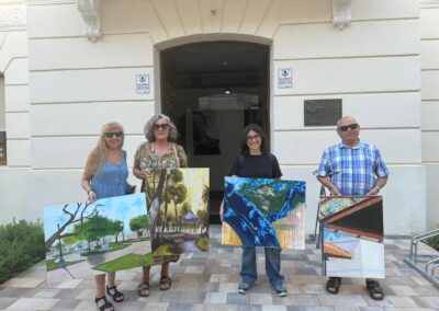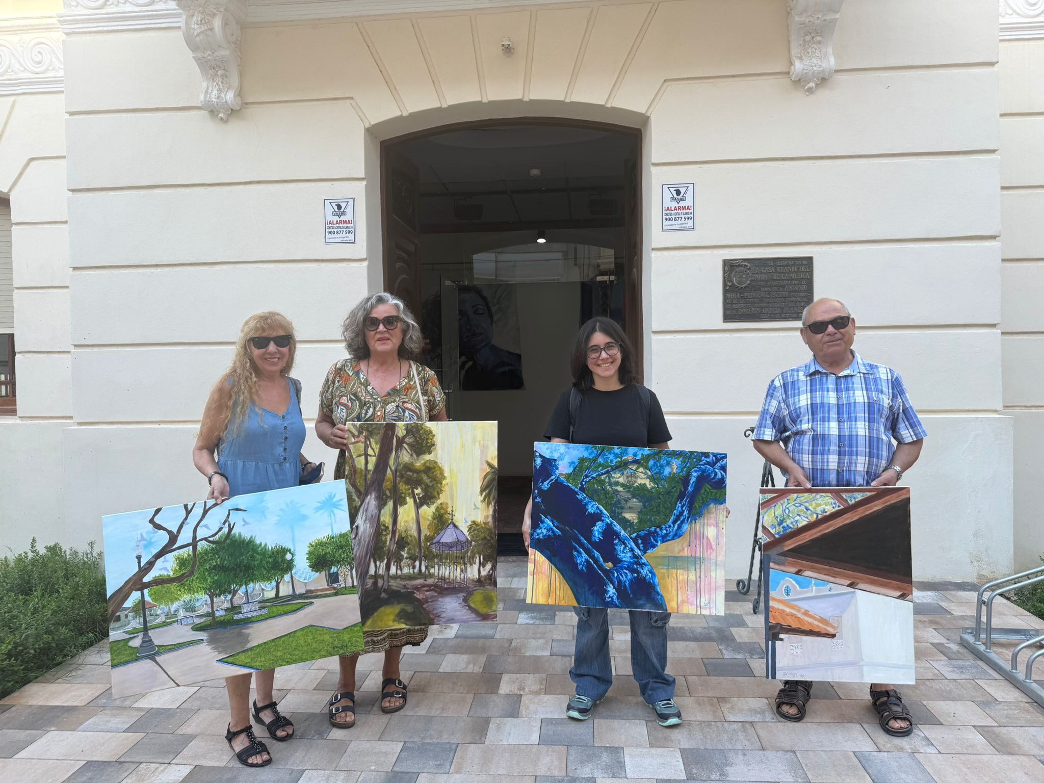 Los trabajos realizados por el alumnado del curso al aire libre impartido por el pintor eldense pueden contemplarse en establecimientos situados en varias calles de la ciudad, como Juan Carlos I y Antonino Vera,