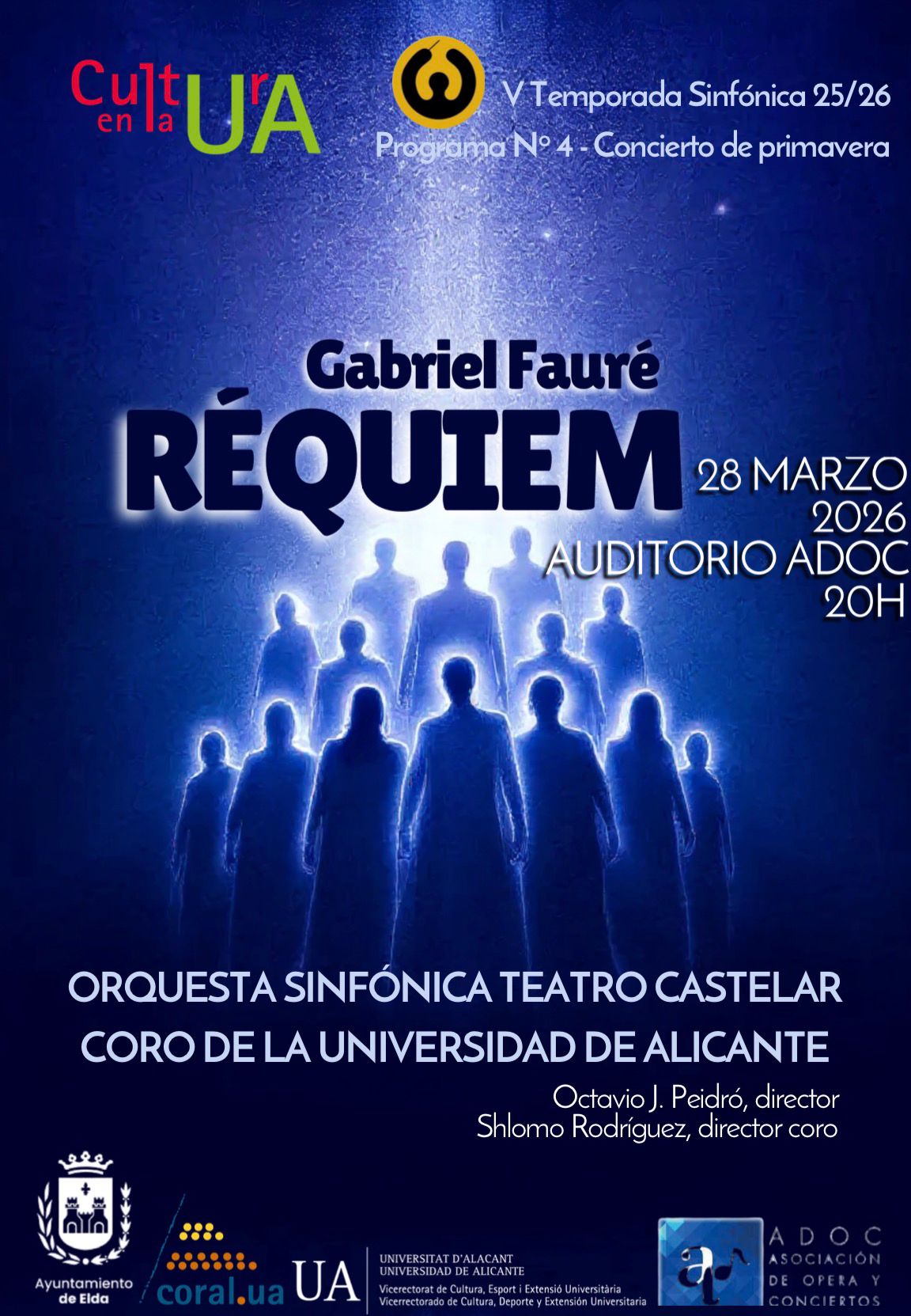 El Auditorio de la Asociación de Ópera y Conciertos (ADOC) de Elda acogerá el próximo sábado 28 de marzo a las 20:00 horas el Programa nº4 de la V Temporada Sinfónica 2025/2026, un concierto de primavera protagonizado por el célebre ‘Réquiem’ de Gabriel Fauré.