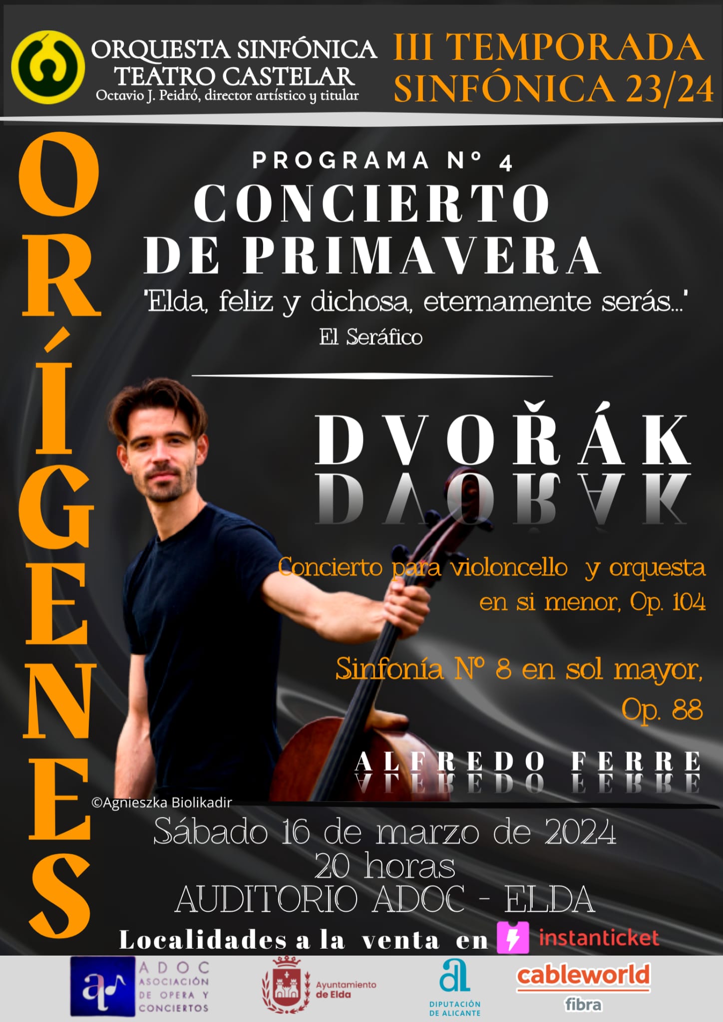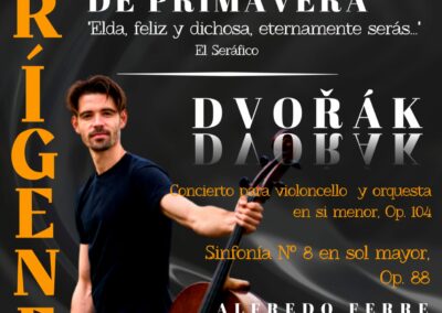 Para esta ocasión, siguiendo la idea de contar con artistas eldenses, el solista será el violoncellista Alfredo Ferre Martínez, un músico eldense afincado en Suiza que, bajo la dirección de Octavio J. Peidró, director artístico y titular de la orquesta, nos demostrará su alto nivel interpretativo.