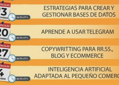 Miércoles, 13 de septiembre (de 15 a 17 horas): Estrategias para crear u gestionar bases de datos para comercios.