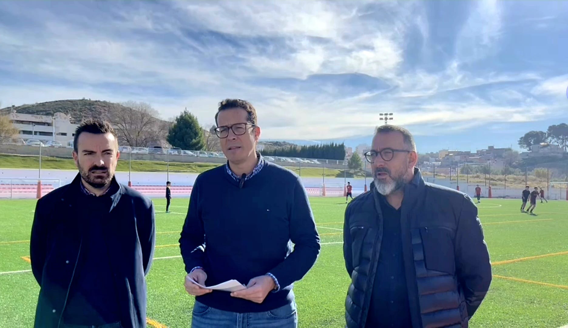 El alcalde de Elda, Rubén Alfaro, ha visitado esta mañana las instalaciones de La Sismat, donde han concluido los trabajos de mejora del campo de fútbol número 2, conocido como ‘Paco Gallardo’, de esta emblemática instalación deportiva. El regidor eldense ha estado acompañado por los concejales de Servicios Públicos Sostenibles e Inversiones, José Antonio Amat, y de Deportes, Fernando Gómez.