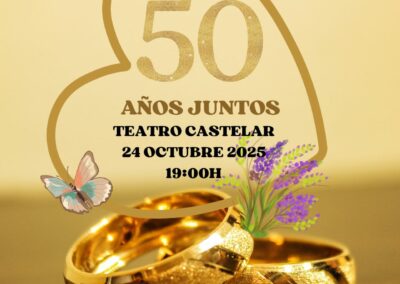 El Teatro Castelar acogerá el próximo 24 de octubre el evento ‘Bodas de Oro’, una celebración que dará comienzo a las 19.00 horas y que desde 2018 rinde homenaje a aquellas parejas empadronadas en Elda que durante el año en curso celebran sus 50 años de matrimonio. Hay que recordar que la edición de 2020 se suspendió por la pandemia, por lo que en la gala de 2021 se reconoció a las parejas de ambos años.