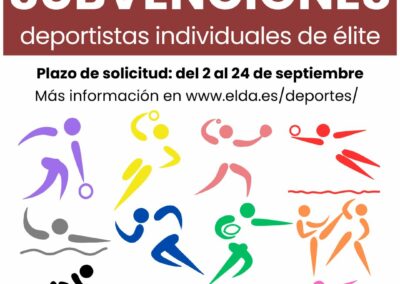 Para este año el importe total de las subvenciones asciende a 20.000 euros, que serán repartidos por concurrencia competitiva, es decir, según los méritos baremados. Toda la información y la documentación necesaria se puede consultar en la página web del Ayuntamiento de Elda (www.elda.es/deportes/), así como en la Concejalía de Deportes, ubicada en la Plaza de la Constitución.