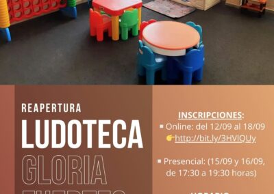 La ludoteca municipal Gloria Fuertes reabrirá sus puertas el próximo 22 de septiembre, tal y como ha anunciado esta mañana la concejala de Participación Ciudadana, Lorena Pedrero. La edil ha indicado que «estas instalaciones, que como cada año recupera la actividad con el inicio del curso escolar, tendrán dos horarios diferenciados de lunes a viernes: de 17:30 a 18:30 horas, para los niños y niñas de 5 a 8 años, y de 18:30 a 19:30 para los de 9 a 12 años».