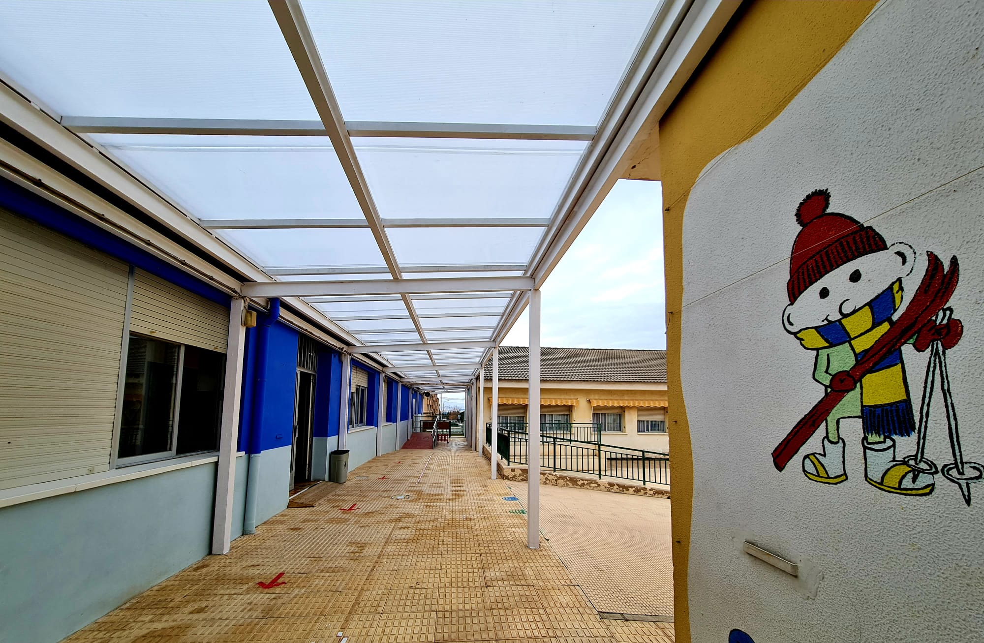 En el Centro de Educación Infantil Nuevo Almafrá se ha sustituido la cubierta de policarbonato que se encontraba en el patio y que se encontraba en mal estado, suponiendo un peligro para los niños y niñas que diariamente acuden al centro educativo. Además, los trabajos también incluían impregnar con esmalte sintético las superficies metálicas de la estructura y la eliminación de las antiguas placas.
