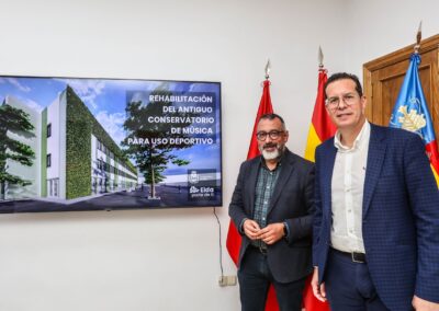 El regidor eldense ha destacado, además, que «el proyecto contempla la reorganización de las tres plantas que componen el edificio, ubicando en las diferentes estancias las salas necesarias para el desarrollo de su función destinada al mundo de deporte, como es una conserjería, vestuarios adaptados, un salón de actos, una cafetería y varios despachos y salas de reuniones para uso administrativo».