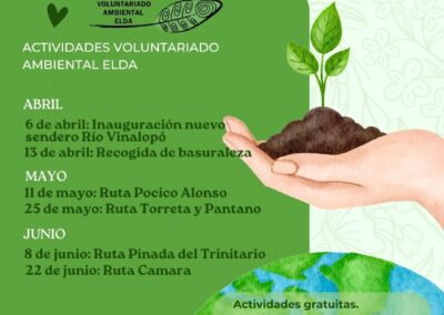 Para más información sobre las actividades y cómo participar, los interesados pueden contactar con la Concejalía de Medio Ambiente Natural o visitar la página web del voluntariado https://voluntariadoambientalyanimalelda.es/ .