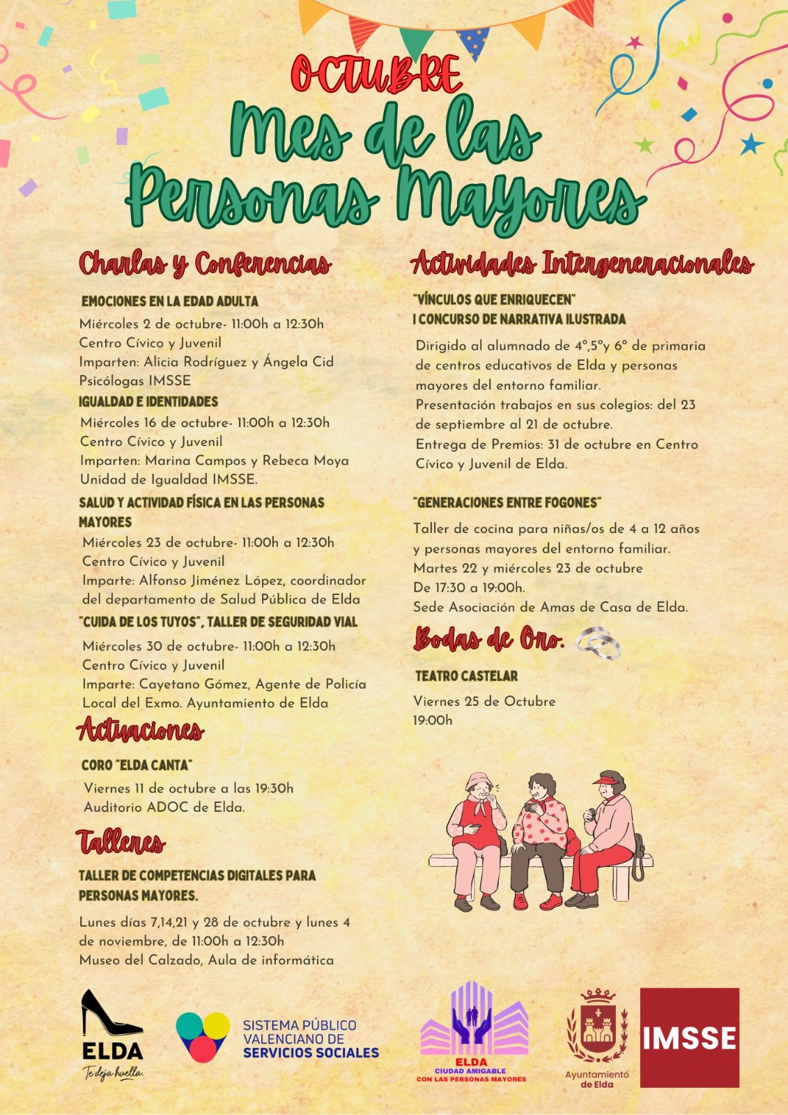 Por otra parte, el viernes 11 de octubre, a las 19.30 horas en el Auditorio ADOC, tendrá lugar el concierto coral ‘Elda Canta’, a cargo de un coro formado por personas mayores. De la misma manera, los días 7, 14, 21 y 28 de octubre y el 4 de noviembre se ofrecerá en el Museo del Calzado un taller sobre competencias digitales para mayores.