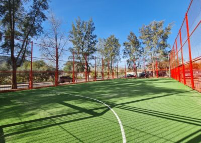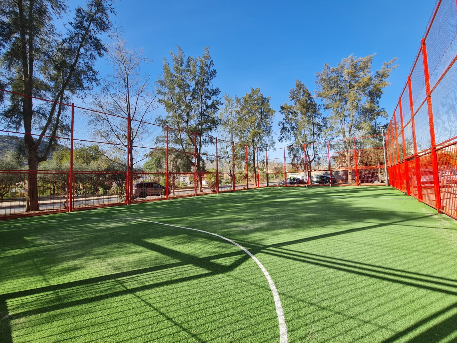 Del mismo modo, también se ha renovado totalmente el césped sintético de la pista para obtener una superficie firme y sin obstáculos para que la pelota pueda rodar de manera uniforme durante la práctica de deportes como el fútbol, que es uno de los más desarrollados por los usuarios de esta zona, disfrutando así de la práctica deportiva y la socialización con otros compañeros y compañeras en un espacio público al aire libre.