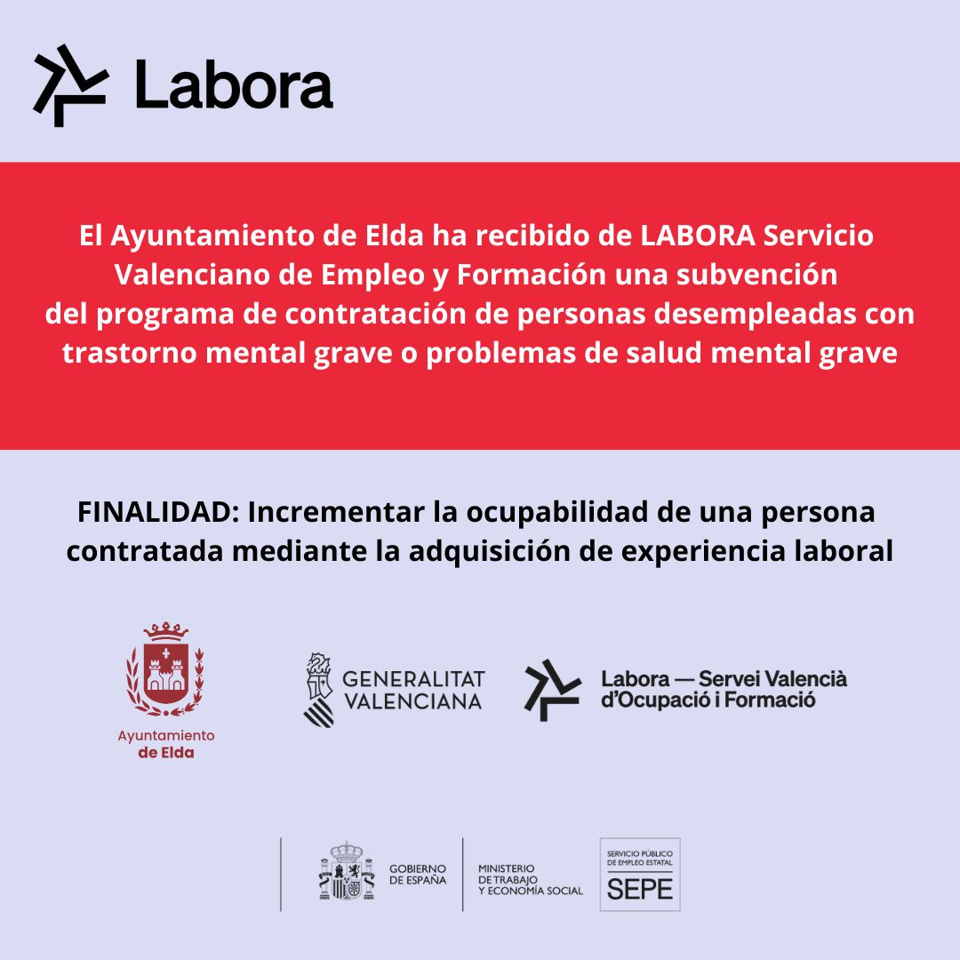 El Consistorio eldense ha podido realizar esta contratación gracias a una subvención de 20.000 euros concedida por Labora-Servicio Valenciano de Ocupación y Formación, siendo financiada con cargo al Capítulo IV del Subprograma 322.C01. Código de línea S0282 ‘Empleo público y desarrollo local’ fondos procedentes del Servicio Público de Empleo Estatal.