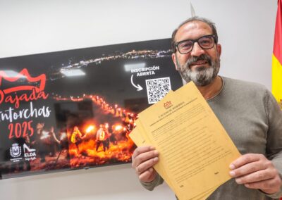 Guardiola ha recordado que «la Bajada de Antorchas es un hito muy importante en la Navidad Eldense y por eso queremos recordar que la inscripción seguirá abierta hasta el lunes 30, pudiendo realizarse a través del la página web del Ayuntamiento (https://www.elda.es/bajada-antorchas/inscripcion.php). Aunque el cupo de antorchas de fuego real ya se ha completado y el de antorchas LED va a buen ritmo, queremos que el número de participantes sea el máximo posible».