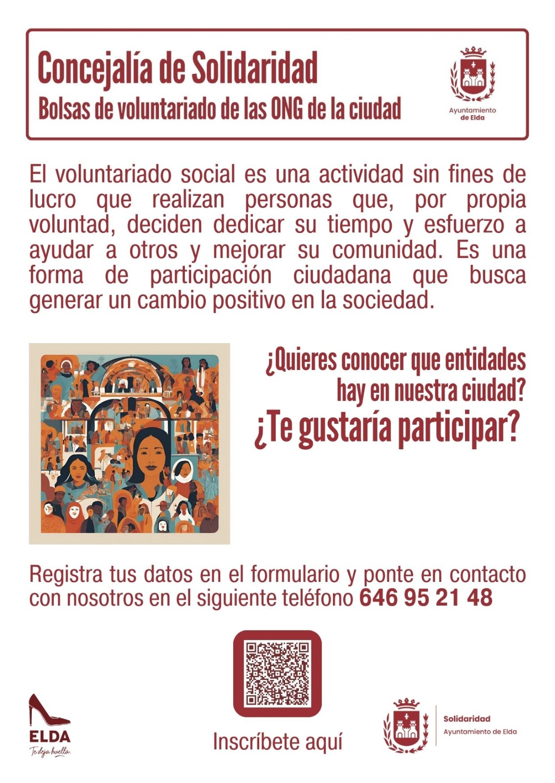 El Ayuntamiento de Elda, a través de la Concejalía de Solidaridad, ha puesto en marcha una bolsa de voluntariado con el objetivo de facilitar la conexión entre personas voluntarias y entidades sociales de la ciudad. La concejala de Solidaridad, Anabel García, ha explicado que «el voluntariado social es una actividad sin fines de lucro que realizan personas que, por propia voluntad, deciden dedicar su tiempo y esfuerzo a ayudar a otros y mejorar su comunidad. Es una forma de participación ciudadana que busca generar un cambio positivo en la sociedad».