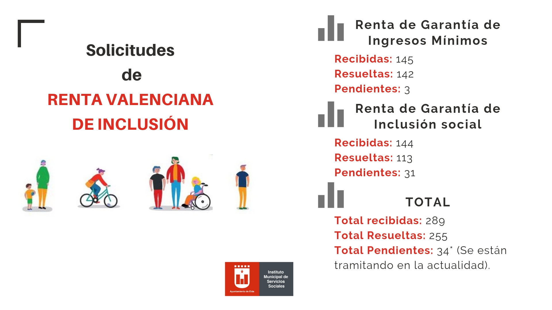 El Ayuntamiento de Elda ha tramitado 289 solicitudes de la Renta Valenciana de Inclusión hasta la fecha, de las que 145 corresponden a la Renta de Garantía de Ingresos Mínimos y 144 a la Renta de Garantía de Inclusión Social. El alcalde de Elda, Rubén Alfaro, y la concejala de Servicios Sociales, Alba García, han dado a conocer hoy estos datos.