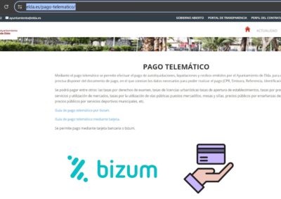 El Ayuntamiento de Elda, a través de la Concejalía de Hacienda, ha habilitado una nueva forma de pago para los contribuyentes a través de la plataforma Bizum con el objetivo de facilitar a los ciudadanos y ciudadanas el pago de tasas y tributos municipales. Este nuevo recurso está ya activo en la página web del Ayuntamiento a través del enlace https://www.elda.es/pago-telematico/