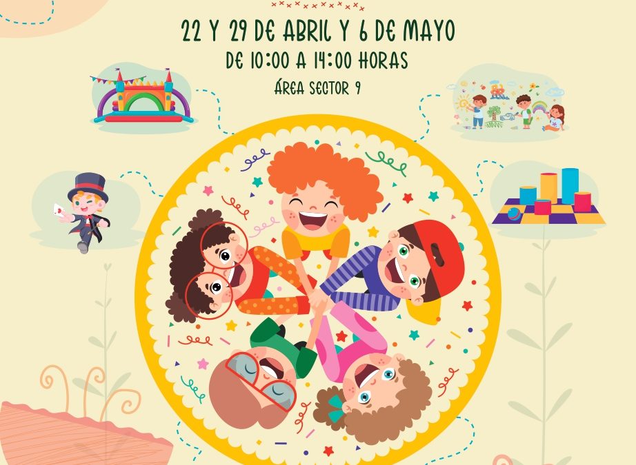 El sábado 22 de abril la programación incluye juegos gigantes, globoflexia, hinchables (pista americana y rocódromo) y talleres infantiles (slime y pulseras); el sábado 29 de abril, juegos gigantes, pintacaras, hinchables (multihéroes y tobogán gigante) y talleres infantiles (pompas de jabón y llaveros con agua); el sábado 6 de mayo, scape-room (a partir de 10 años) e hinchables (barredera y tobogán gigante).
