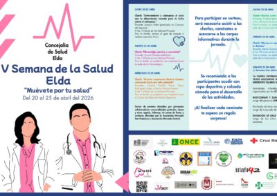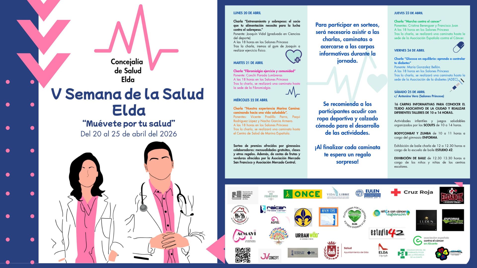 El Ayuntamiento de Elda presenta la Semana de la Salud 2026, que tendrá lugar del 20 al 25 de abril en la calle Antonino Vera, a la altura de los Salones Princesa, bajo el lema ‘Muévete por tu salud’. Esta iniciativa de la Concejalía de Salud nace con el objetivo de fomentar hábitos de vida saludables entre la población a través de una programación variada, participativa y accesible para todos los públicos.