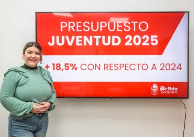 El Ayuntamiento de Elda ha incrementado un 18,58% las partidas presupuestarias destinadas al desarrollo de políticas de Juventud durante el ejercicio 2025. Así lo ha informado la concejala del área, Anabel García, quien ha indicado que el presupuesto para este año asciende a 100.000 euros. «Me gustaría destacar que desde que accedimos al gobierno local, se ha multiplicado por diez el presupuesto de la Concejalía de Juventud, lo que demuestra nuestra apuesta por las y los jóvenes de nuestra ciudad».
