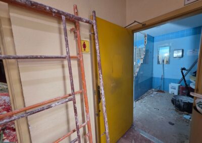 Durante esta intervención se procederá también a la sustitución de todos los sanitarios existentes, la renovación de las instalaciones de fontanería, la adecuación de la instalación eléctrica y la sustitución del alicatado de las paredes para dotarlos también de una mejora estética, mientras que también se prevé la sustitución del falso techo de escayola existente por un techo desmontable, independizándose los espacios interiores de cada aseo mediante cabinas sanitarias.