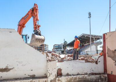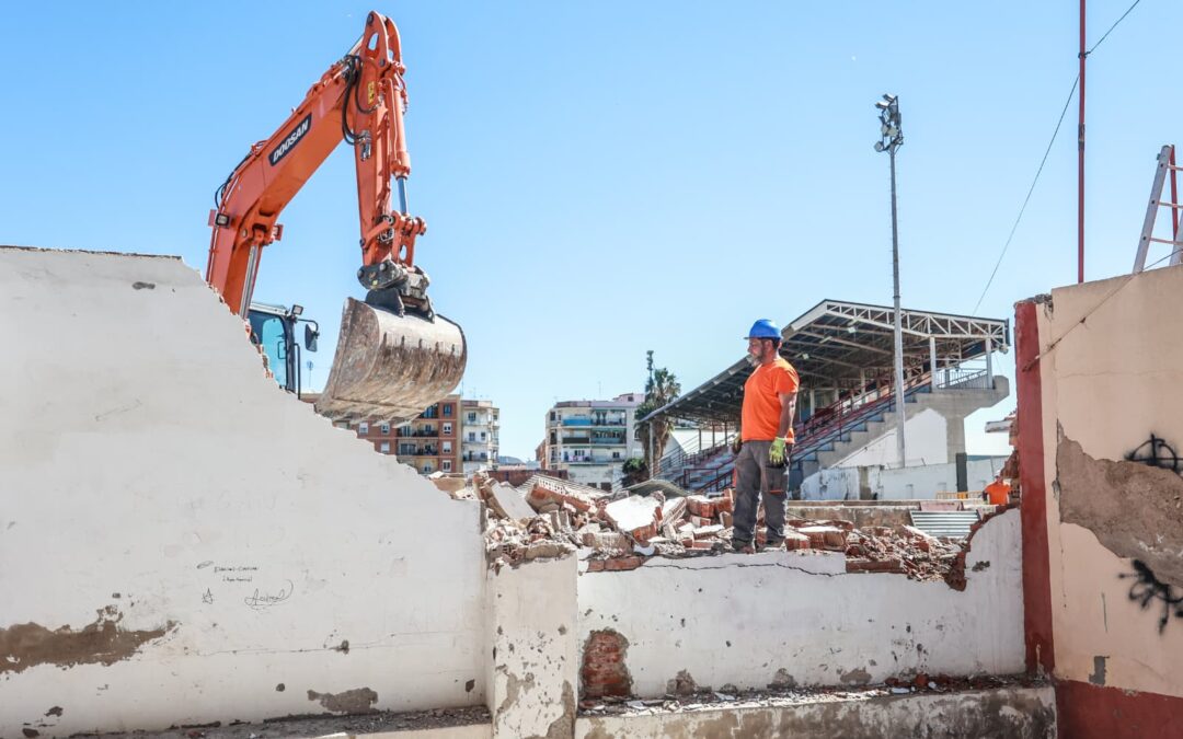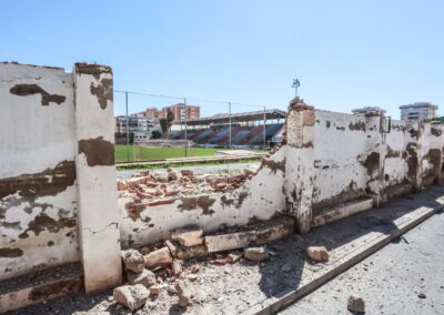 Las obras han comenzado esta mañana con la demolición de la tapia existente, que circunda el perímetro del estadio municipal desde la calle Venezuela hasta la calle Perú, pasando por la avenida de las Olimpiadas. De ese modo, las labores iniciales de este proyecto contemplan la retirada completa de este muro perimetral que se encontraba deteriorado por el paso del tiempo y las inclemencias meteorológicas.