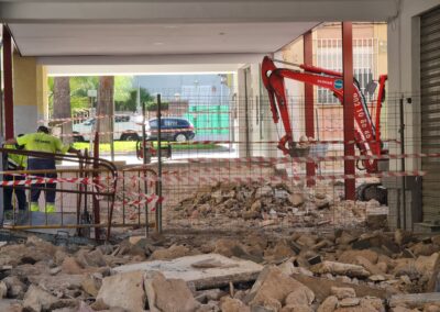 Los trabajos han comenzado con las demoliciones del pavimento existente, que se encontraba deteriorado por el paso del tiempo, con el fin de implantar una nueva superficie transitable homogénea y antideslizante, lo que evitará que en el futuro se puedan producir resbalones y accidentes.