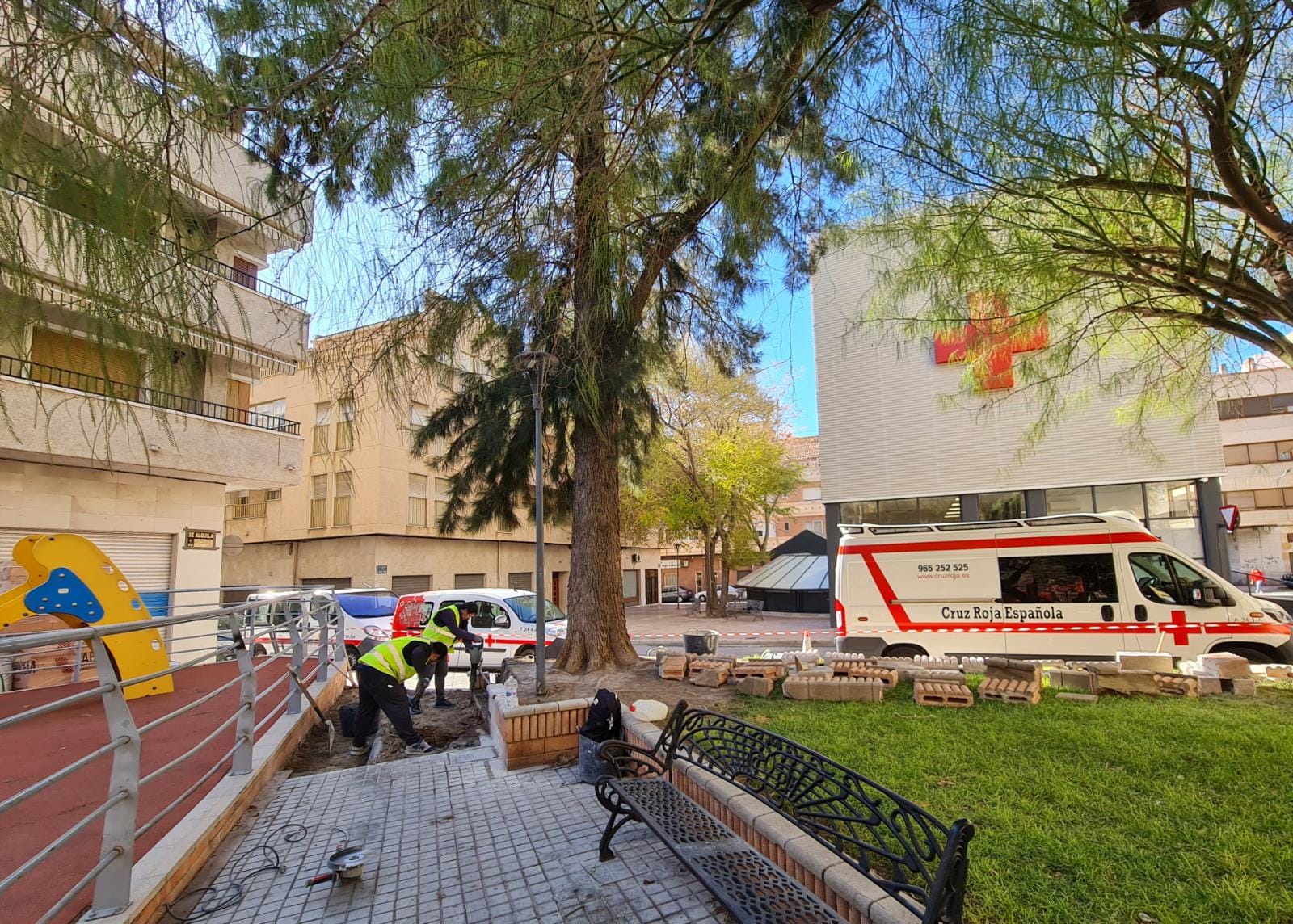 La Concejalía de Inversiones y Servicios Públicos Sostenibles del Ayuntamiento de Elda ha comenzado las obras para la remodelación y rehabilitación de la Plaza de la Cruz Roja, entre las calle Hernán Cortés y Ramón Gorgé, con el objetivo de evitar el deterioro del murete provocado por las raíces de los grandes árboles que coronan este jardín y adecuar la zona de juegos infantiles para hacerla más segura y de calidad para los niños y las niñas de este barrio de la ciudad.