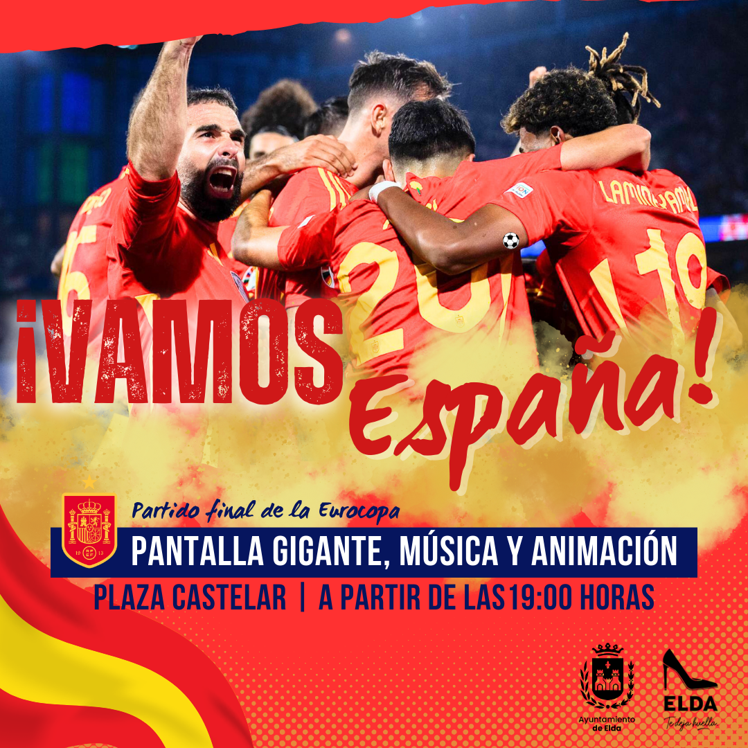 El Ayuntamiento de Elda instalará el próximo domingo una pantalla gigante para que todos los aficionados y aficionadas eldenses puedan seguir la final de la Eurocopa 2024, en la que la Selección Española se medirá a partir de las 21.00 horas al vencedor de la semifinal entre Inglaterra y Países Bajos que se juega esta noche.