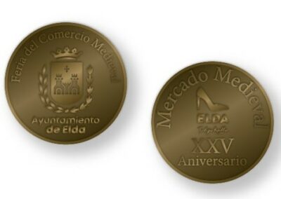 El Ayuntamiento de Elda ha realizado una edición especial y limitada de monedas conmemorativas con motivo del 25 aniversario de la Feria del Comercio Medieval de Elda, que se celebrará los días 12 y 13 de abril en las calles y plazas del Centro Histórico de la ciudad.