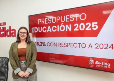 El Ayuntamiento de Elda ha incrementado un 16,2% la partida destinada a Educación en los Presupuestos Municipales para el año 2025, que pasa de los 298.652 euros de 2024 a los 347.042 del presente ejercicio. Así lo ha anunciado esta mañana la concejala del área, María Gisbert, quien ha destacado «el aumento en los contratos de las actividades de extraescolares y de prevención e intervención del absentismo. Estos dos contratos saldrán a licitación a lo largo de este año, con un incremento de presupuesto en ambos con el objetivo de aumentar y mejorar los servicios en los pliegos de condiciones».