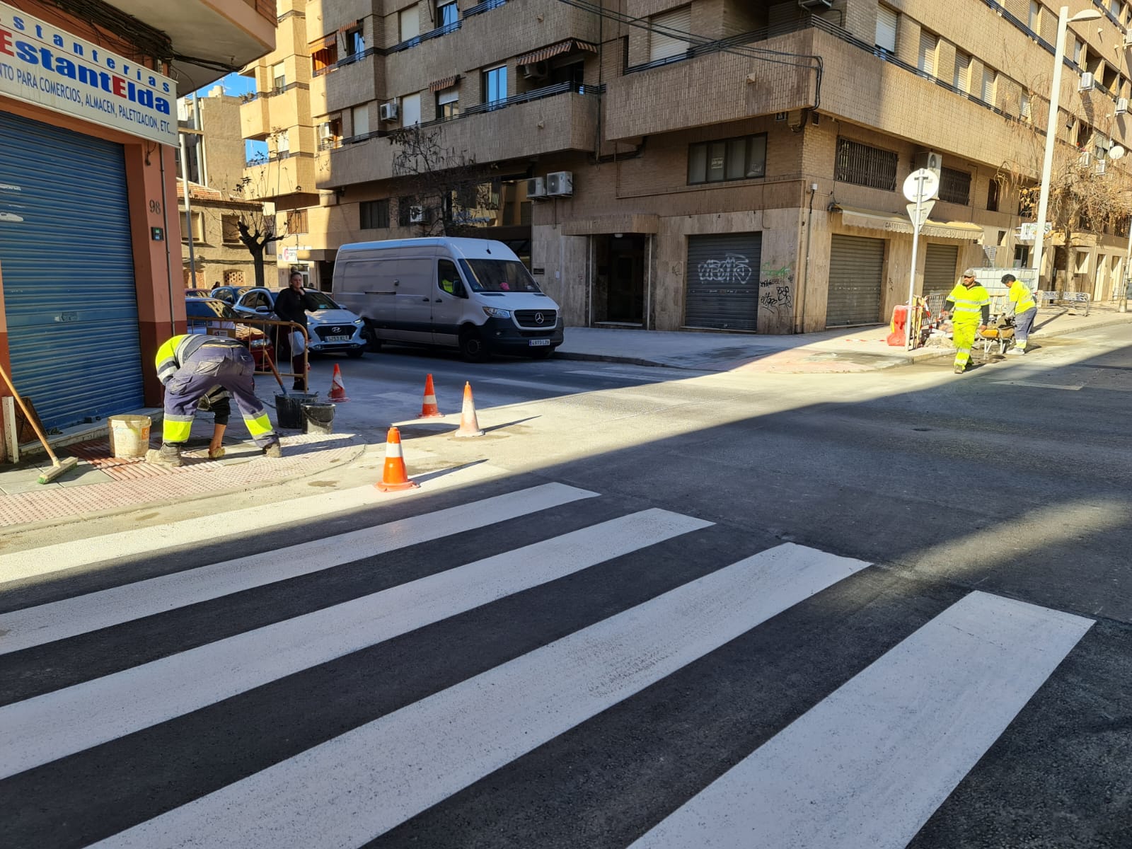 La Concejalía de Inversiones y Servicios Públicos Sostenibles del Ayuntamiento de Elda ultima las obras para la mejora de la accesibilidad y asfalto en las calles San Crispín y Ramón Gorgé, en el tramo comprendido entre las calles Pablo Iglesias y San Ignacio de Loyola, con el objetivo de favorecer el paso de los viandantes y los vehículos de estas concurridas vías del centro de la ciudad.