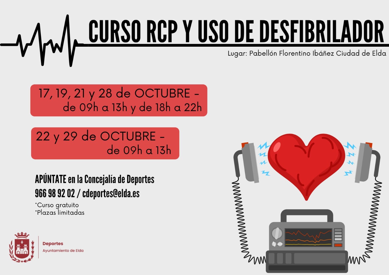 El Ayuntamiento de Elda, a través de la Concejalía de Deportes, ha organizado un curso de uso de desfibrilador y maniobras de reanimación dirigido a entrenadores, monitores y entidades y clubes deportivos de la ciudad. Se trata de la segunda formación de este tipo ofrecida por el Ayuntamiento, ya que antes de la pandemia se llevó a cabo la primera con motivo de la instalación de desfibriladores en todas las instalaciones deportivas de Elda.